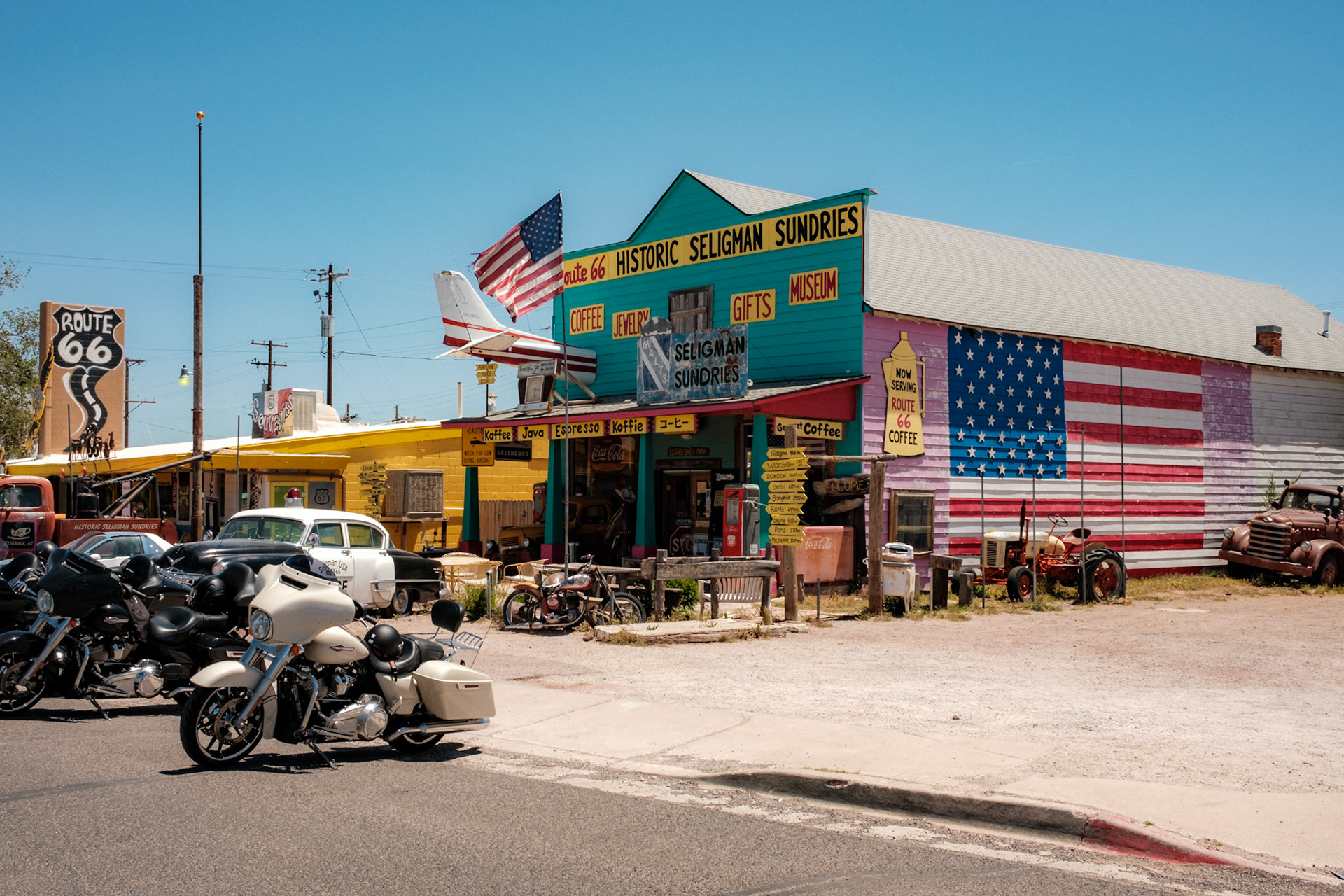 While we drove ~1,500 miles on or around that most famous of roads, I only took the camera out for two stops: a coffee run in Seligman and a slight detour to *that* corner in Winslow, Arizona. Wish we could've taken it easy for a little while longer, the downtown area was really cute! Steph said it was on an HGTV show or something...